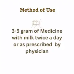 3-5 gram of Medicine with milk twice a day or as prescribed by physician